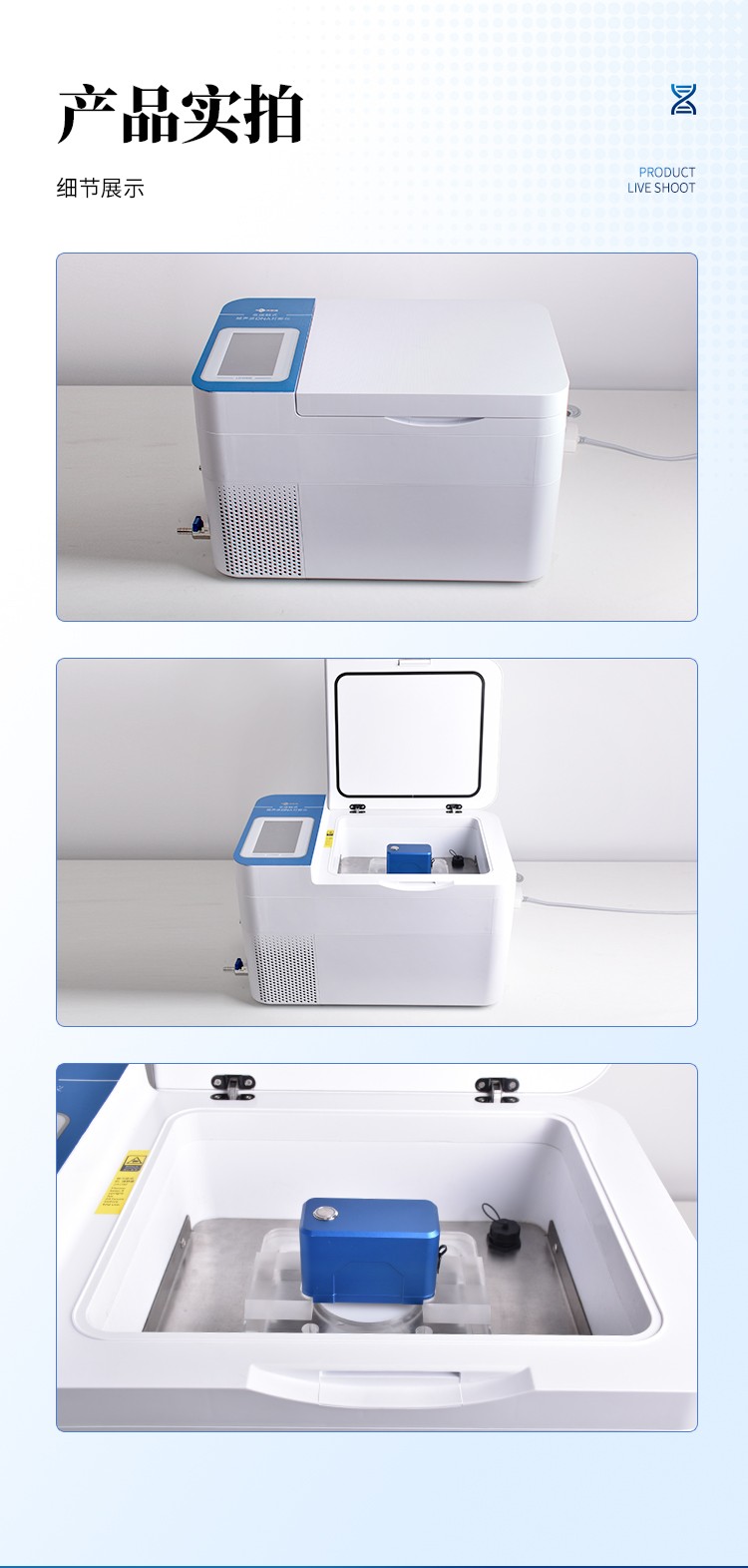 3.外置低温水浴接口,可外接冷水机,准确控制样品温度,避免样品变性,尤其适用于对温度敏感的样本处理。